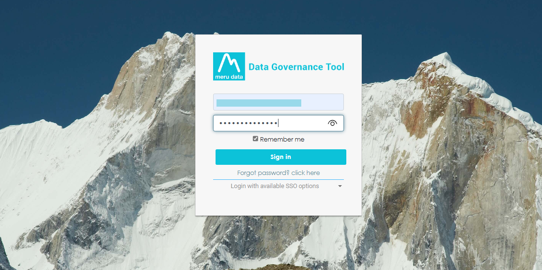 • Log in to your Data Governance Tool account.