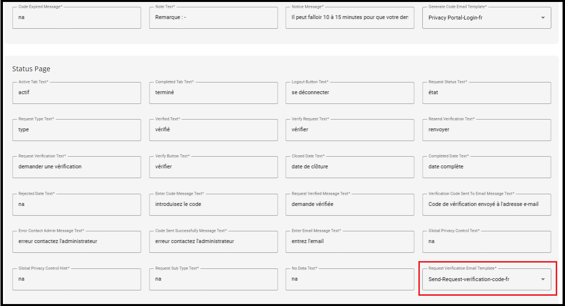 1. Similarly, choose the corresponding Request Verification Email Template (e.g., privacy-portal-request-verification-fr) to send the verification email in the same language.