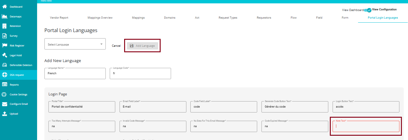 DSAR-Portal Login Language