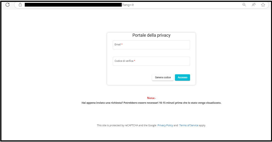 • Open the Privacy Portal link in your browser.