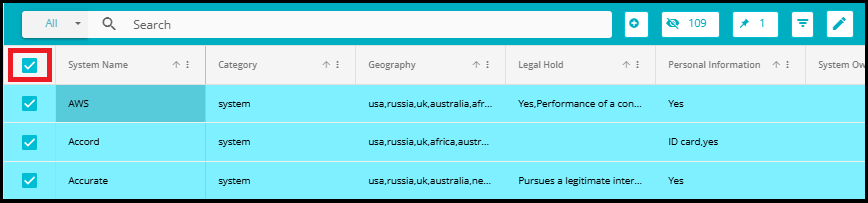 • To select all filtered systems at once, click the checkbox in the header row next to the System Name column---this selects all visible entries without needing to click each one individually.