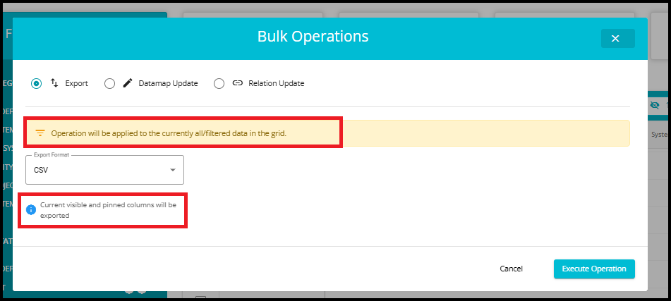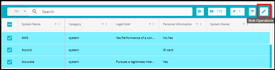 • If you select specific systems and then click Bulk Operations, you will see the message: "Operation will be applied to the currently selected data in the grid."
