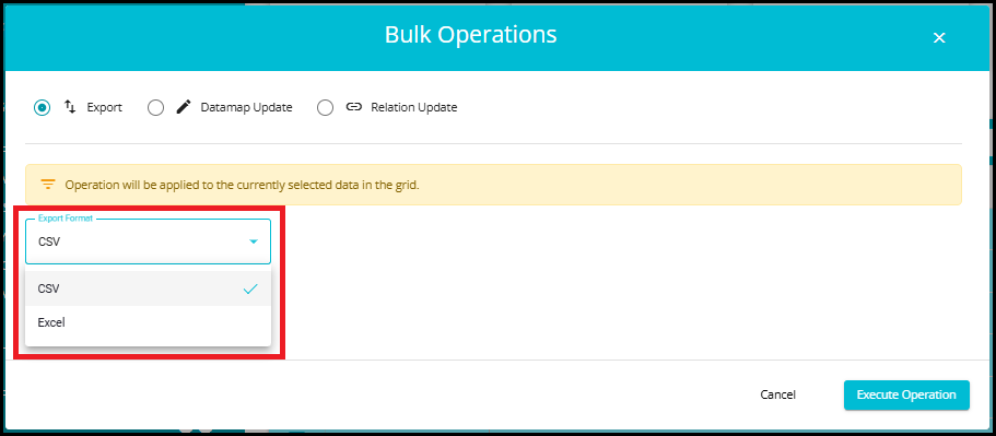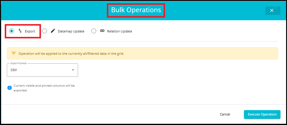 If you do not apply any filters and directly click Bulk Operations → Select Export Format → Execute Operation, then: