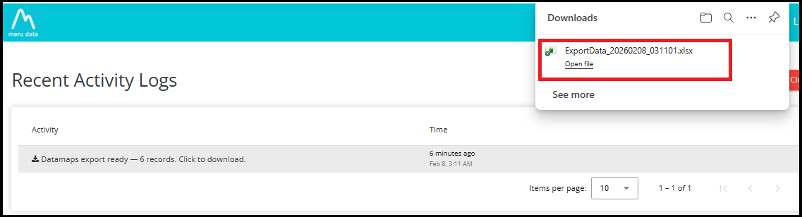 • Click on "Datamaps export ready --- x records. Click to download." To download your file.