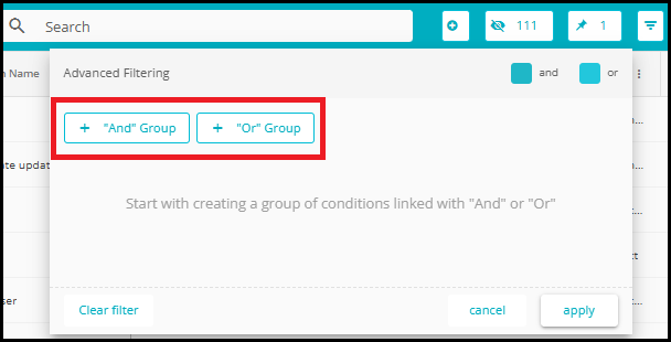 • Click the tick symbol (✔) to add more filters or groups before applying them all together.