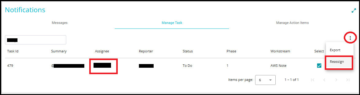 Locate the task you want to reassign (e.g., Task ID: 479).