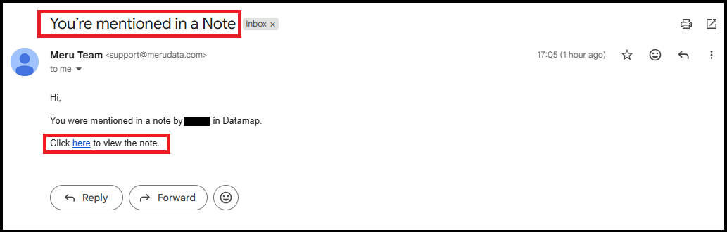 - The new user will also receive an email notification stating they were mentioned in a note.
