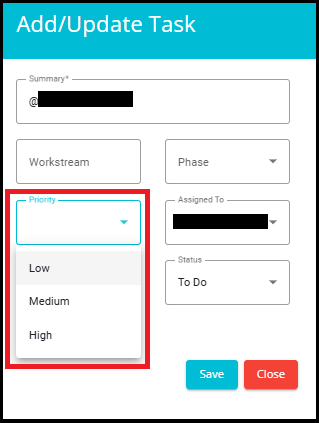 Phase: From the drop-down menu, select the Phase that the task is in.
