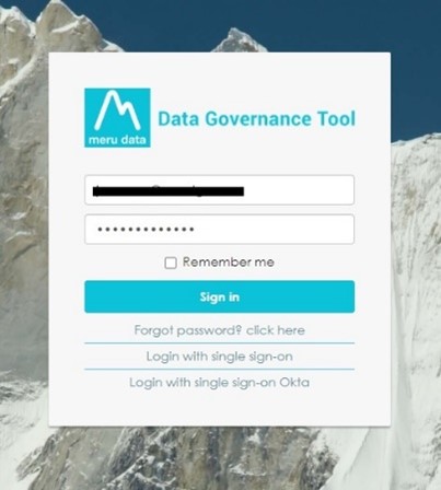 1. Once logged in, the Main Screen of Data Governance Tool will be displayed.