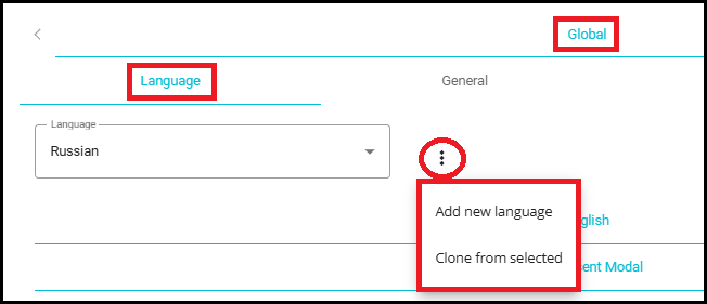 • A new tab for the selected language (e.g., Russian) will appear alongside English (default).