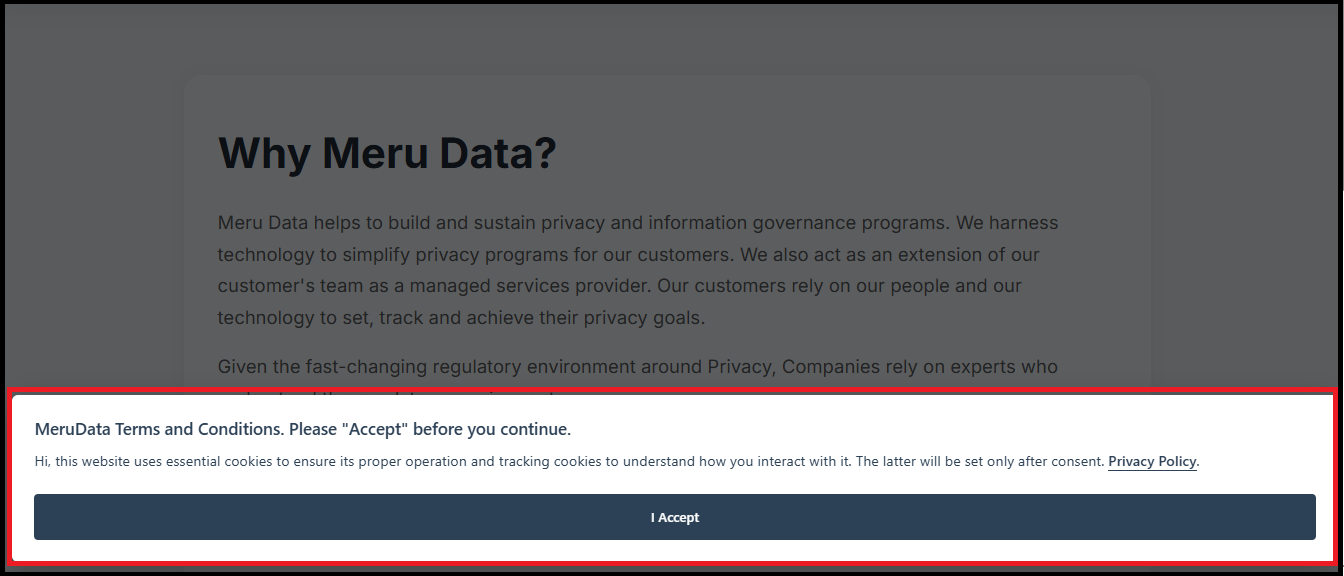 • Blocks access to the website until the user accepts the Terms & Conditions.