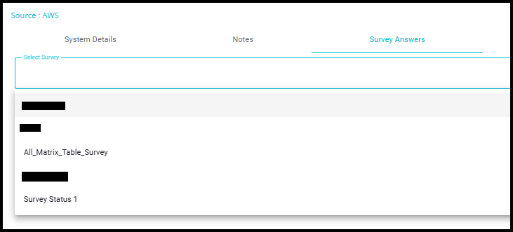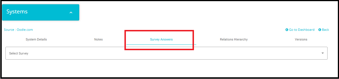 1. From the System Details tab, navigate to the Survey Answers tab.