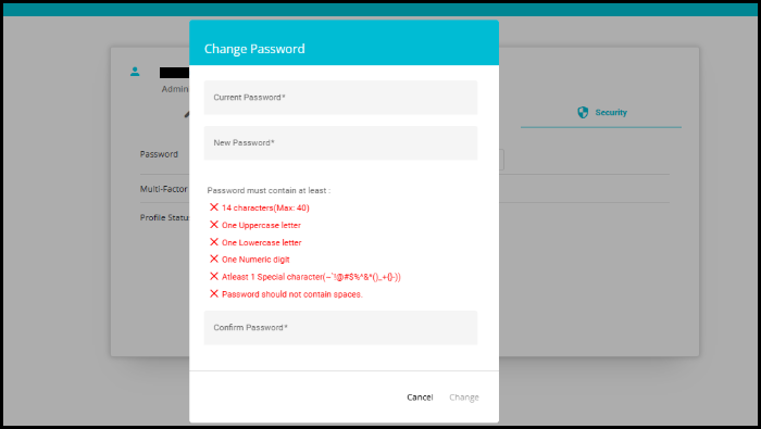 - Change Password allows you to update your current password.